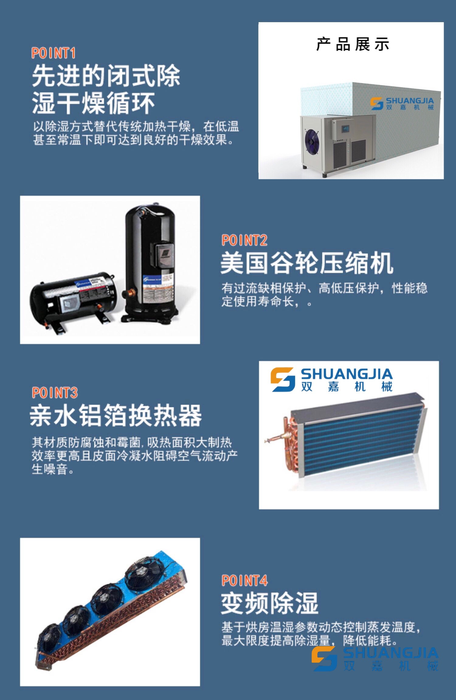 3、自動(dòng)排濕系統(tǒng),通過熱風(fēng)循環(huán)不斷地帶走物料的濕氣,以便快速讓物料烘干,烘干產(chǎn)品的顏色均勻,效率高, 其烘干周期短,耗電量低。