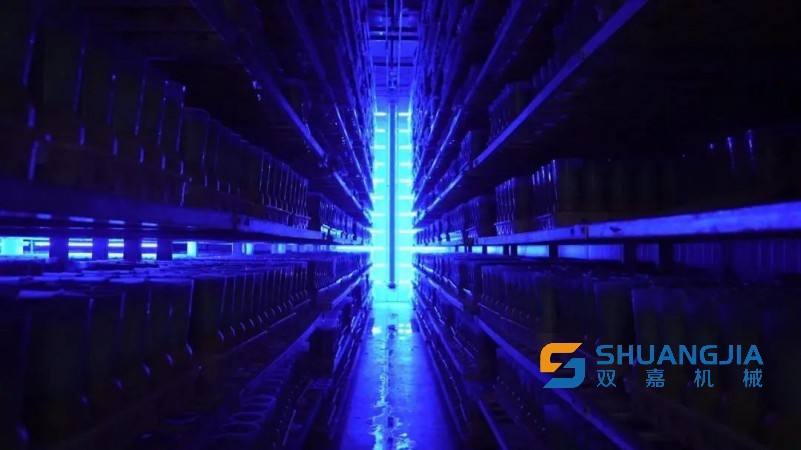 菌絲經(jīng)過(guò)27天左右的生長(zhǎng)后就可以進(jìn)入釆收環(huán)節(jié),這27天就在生育室(菇房)里成長(zhǎng)。藍(lán)光波段一方面可以促進(jìn)金針菇生長(zhǎng),另外一方面還有消菌殺毒效果。